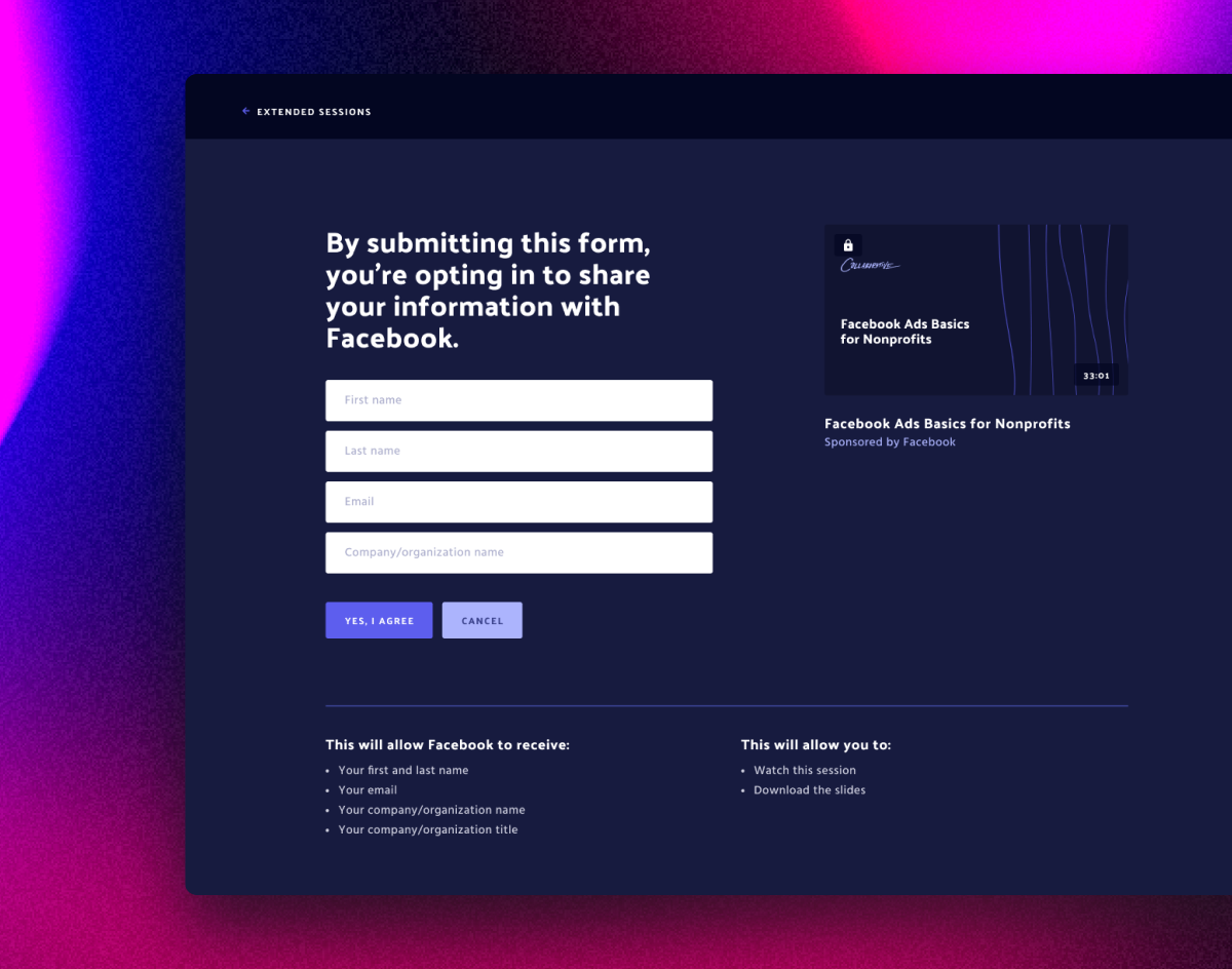 This is a big moment in the user experience where attendees might drop-off. I added incentives to help encourage them to continue. This meant displaying what the attendee will benefit from completing this form.