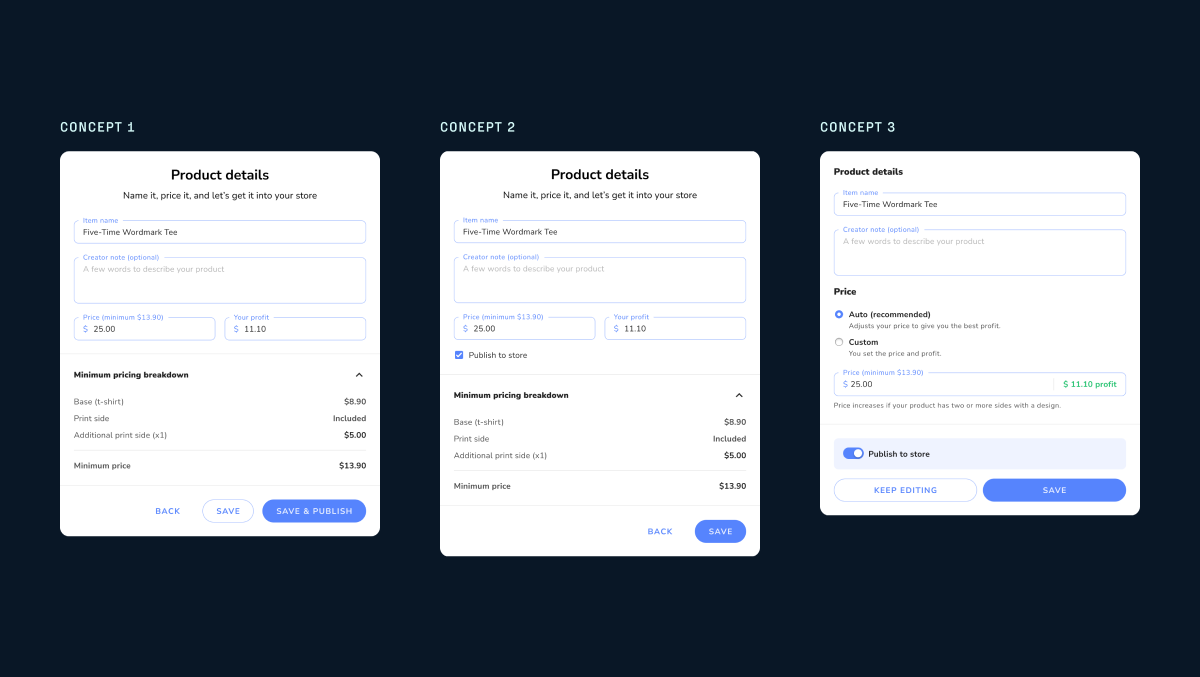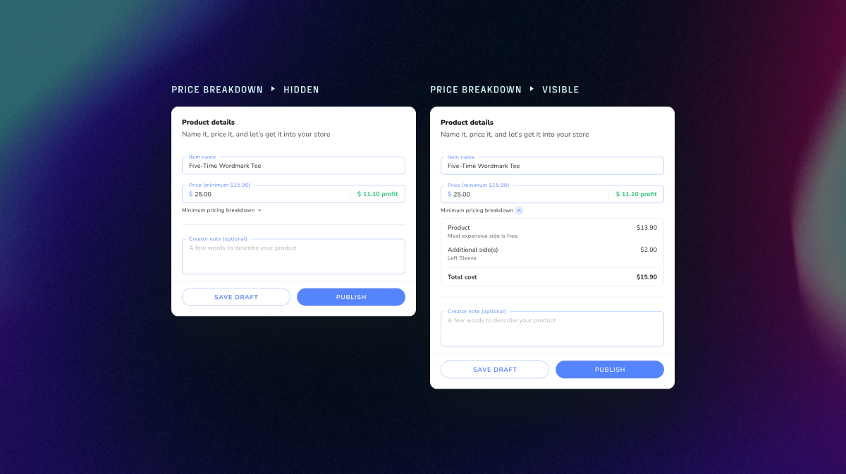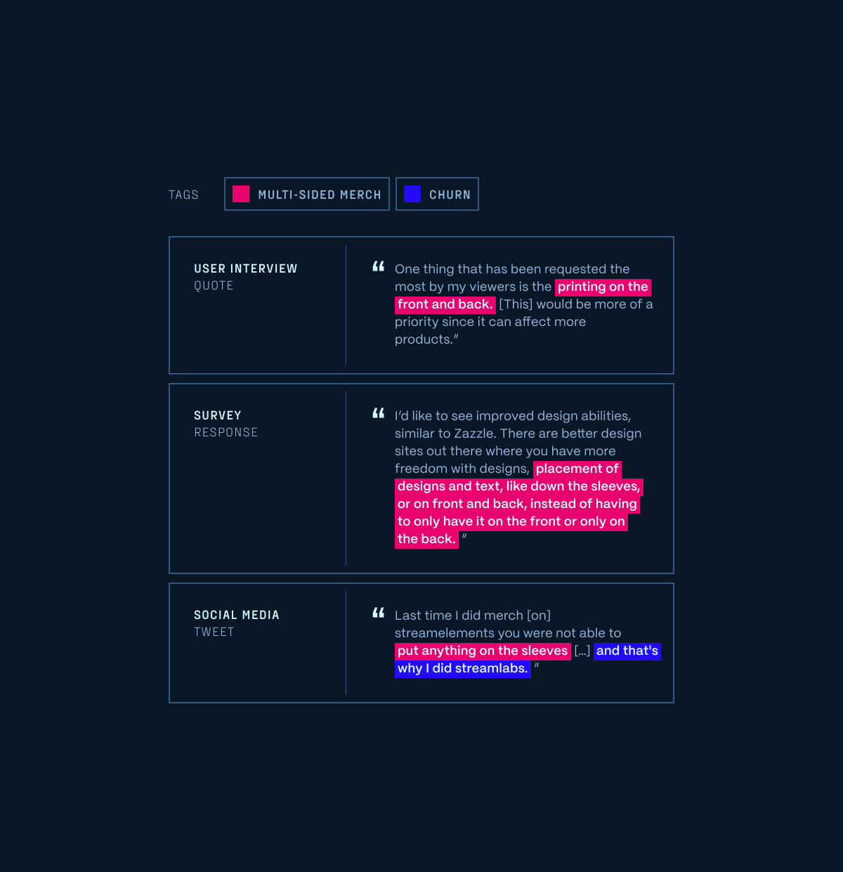 Through interviews, surveys, and social media, we learned from creators the desire to design on multiple sides of a merch product. We also realized its severity since we found evidence of churn.