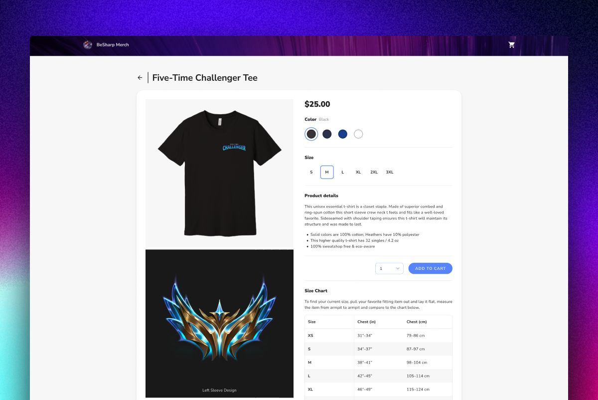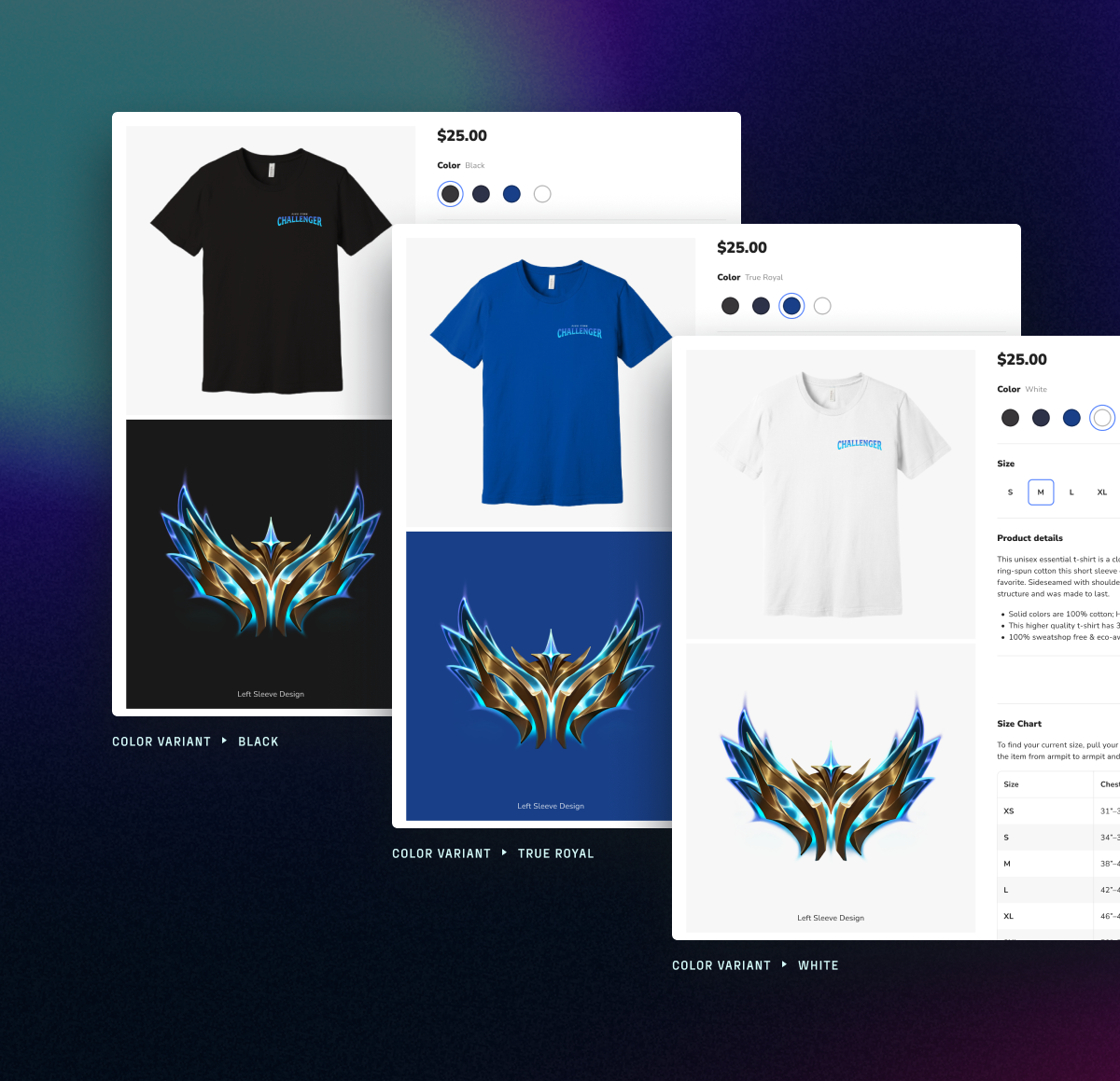 I also updated the product detail page to include the different views for any merch with multiple sides.