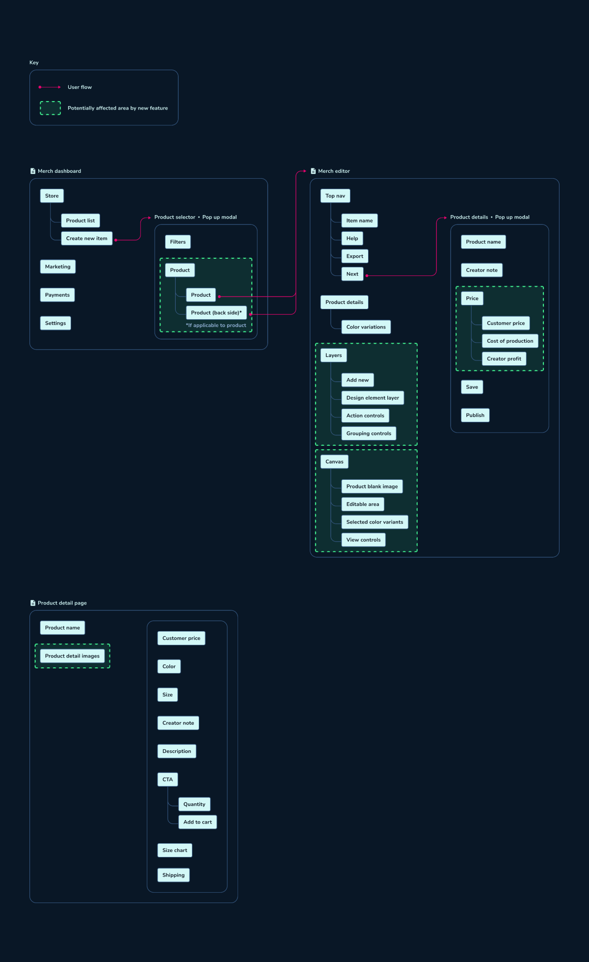 This was also my first project with my team. Creating the information architecture helped me to gain a more in-depth familiarity with the merch product as I began to understand the relationships between contents.