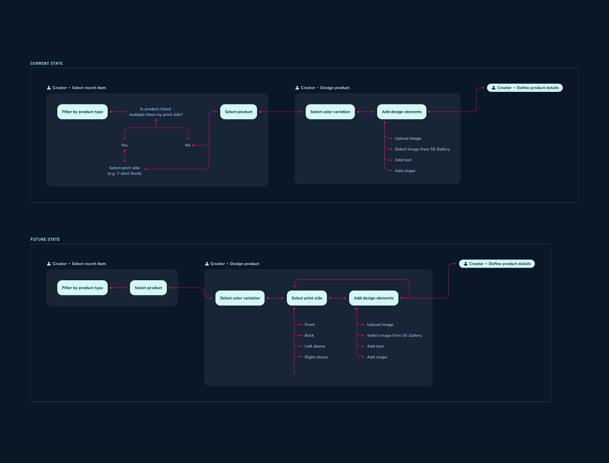 For the future state, I moved that decision point to a more relevant part of the merch design process.