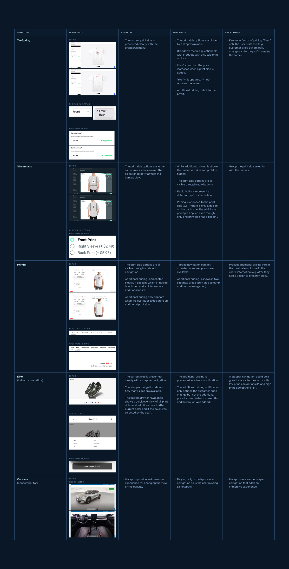 I also looked outside of the merch creation space (sneakers, cars, etc.) to understand how different products in different spaces are approaching a similar problem.